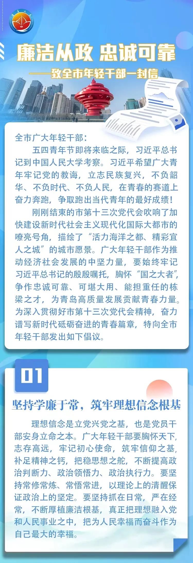 廉潔從政 忠誠可靠——致全市年輕干部一封信