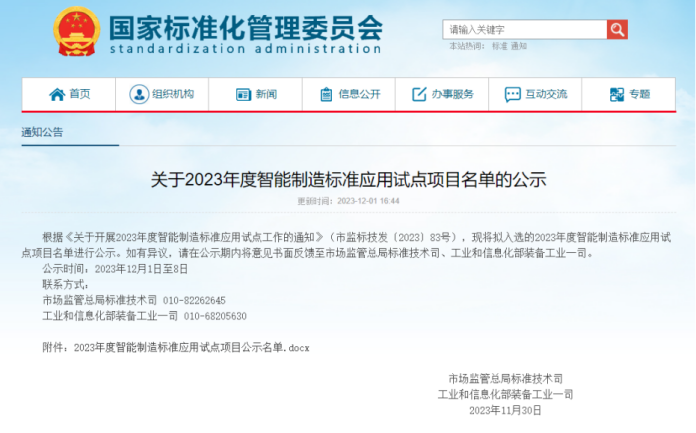 ? ? ? ?11月30日,國家市場監(jiān)管總局標(biāo)準(zhǔn)技術(shù)司、工業(yè)和信息化部裝備工業(yè)一司公告發(fā)布“關(guān)于2023年度智能制造標(biāo)準(zhǔn)應(yīng)用試點(diǎn)項(xiàng)目名單”的公示,青島嶗山礦泉水有限公司和華高數(shù)字科技有限公司聯(lián)合申報(bào)的“瓶(罐)裝飲用水智能工廠標(biāo)準(zhǔn)應(yīng)用試點(diǎn)”榮耀上榜!
