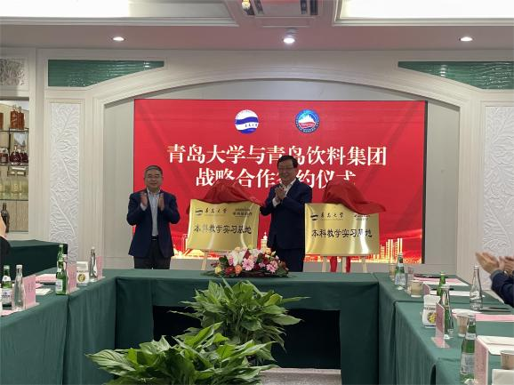 ? ? ? ?12月14日,青島大學(xué)與飲料集團(tuán)在華東·百利酒莊簽署戰(zhàn)略合作協(xié)議。青島大學(xué)黨委書記胡金焱和飲料集團(tuán)黨委書記、董事長(zhǎng)王達(dá)為“青島大學(xué)-青島嶗山礦泉水有限公司本科教學(xué)實(shí)習(xí)基地”“青島大學(xué)-青島華東葡萄釀酒有限公司本科教學(xué)實(shí)習(xí)基地”揭牌。青島大學(xué)黨委常委、副校長(zhǎng)劉彩云和集團(tuán)黨委副書記、總經(jīng)理劉富華代表雙方簽署戰(zhàn)略合作協(xié)議。
