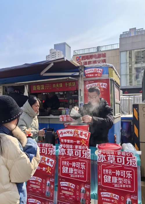 ? ? ? ?2月23日,2024年青島蘿卜、元宵、糖球會(huì)在海云庵正式開街,時(shí)隔四年,又回到老地方,嶗礦公司在海云庵主街嘉禾路攜嶗山熱可樂再次點(diǎn)燃了冬天里的一把火。與此同時(shí),中山路步行街商場(chǎng)內(nèi)、西海岸商圈嶗山可樂同步熱促,為市民驅(qū)趕雪后的嚴(yán)寒,成為島城一道靚麗溫暖的風(fēng)景線。